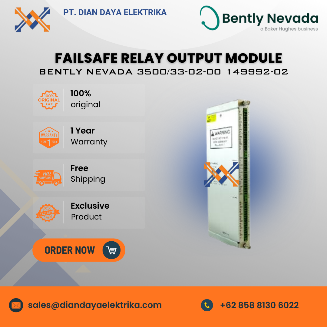 The Bently Nevada 3500/33-02-00 (Part Number 149992-02) is a 16-Channel Failsafe Relay Output Module designed for the 3500 Machinery Protection System.