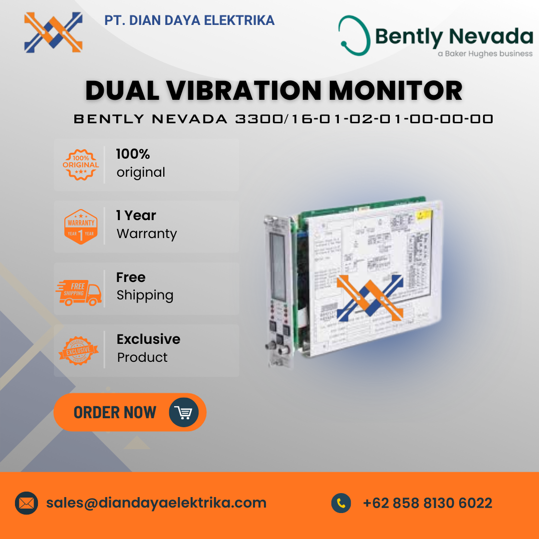 The part number Bently Nevada 3300/16-01-02-01-00-00-00 refers to a specific configuration of the 3300/16 XY/Gap Dual Vibration Monitor. This device is designed for continuous, real-time measurement and monitoring of radial vibration and average shaft position (gap) in industrial machinery.