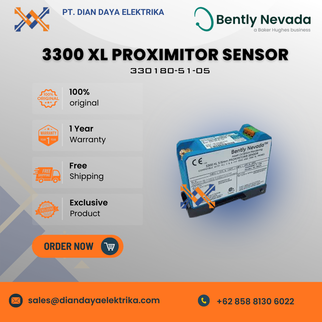 The Bently Nevada 330180-51-05 is a specific configuration of the 3300 XL Proximitor Sensor, which is a key component in a proximity transducer system used for monitoring the condition of industrial machinery.