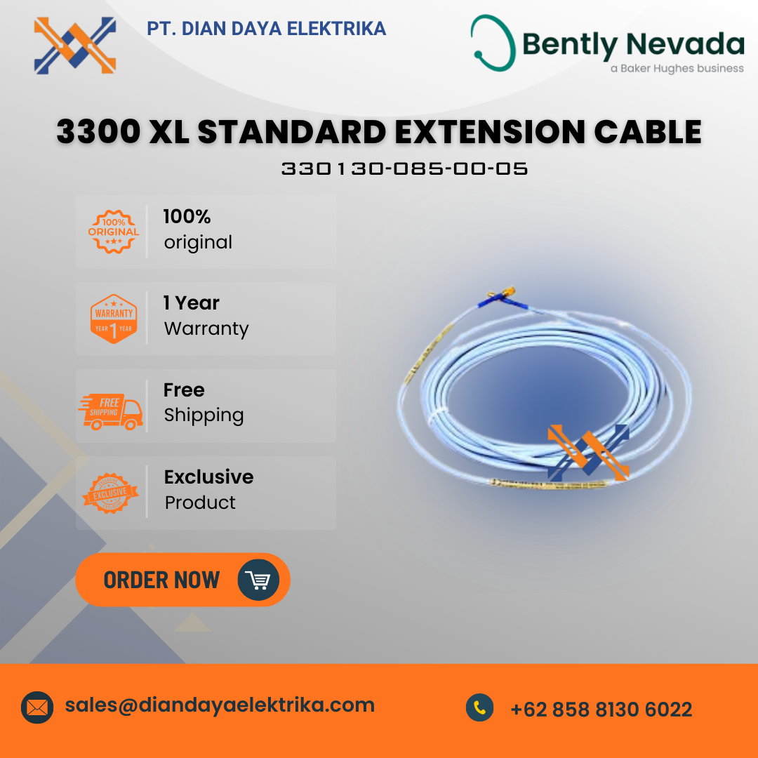 The Bently Nevada 330130-085-00-05 is a specific model of 3300 XL Standard Extension Cable used for vibration and position monitoring systems in industrial applications.