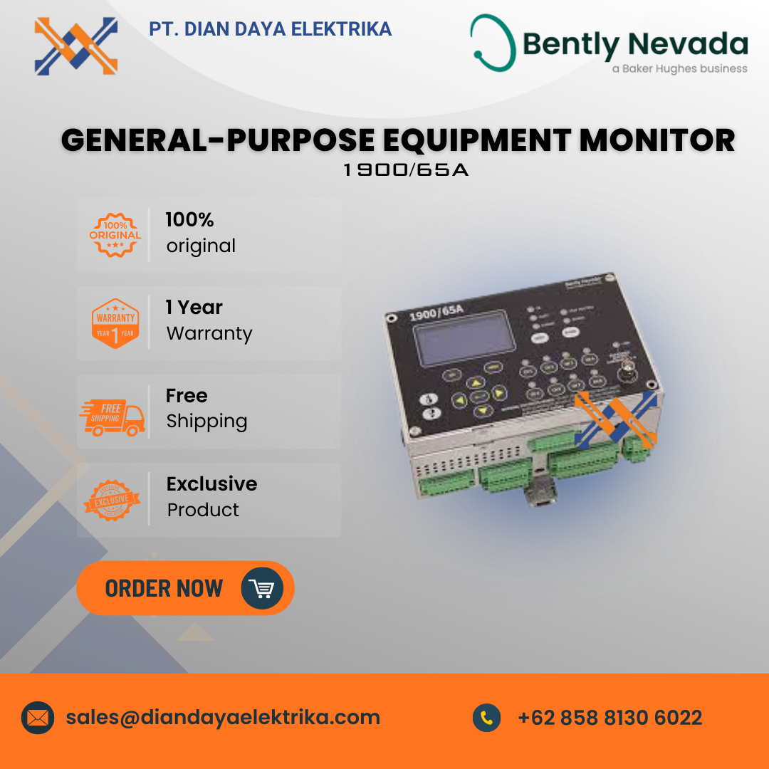 The Bently Nevada 1900/65A is a flexible, 8-channel general-purpose equipment monitor designed for continuous online protection of essential and balance-of-plant machinery.