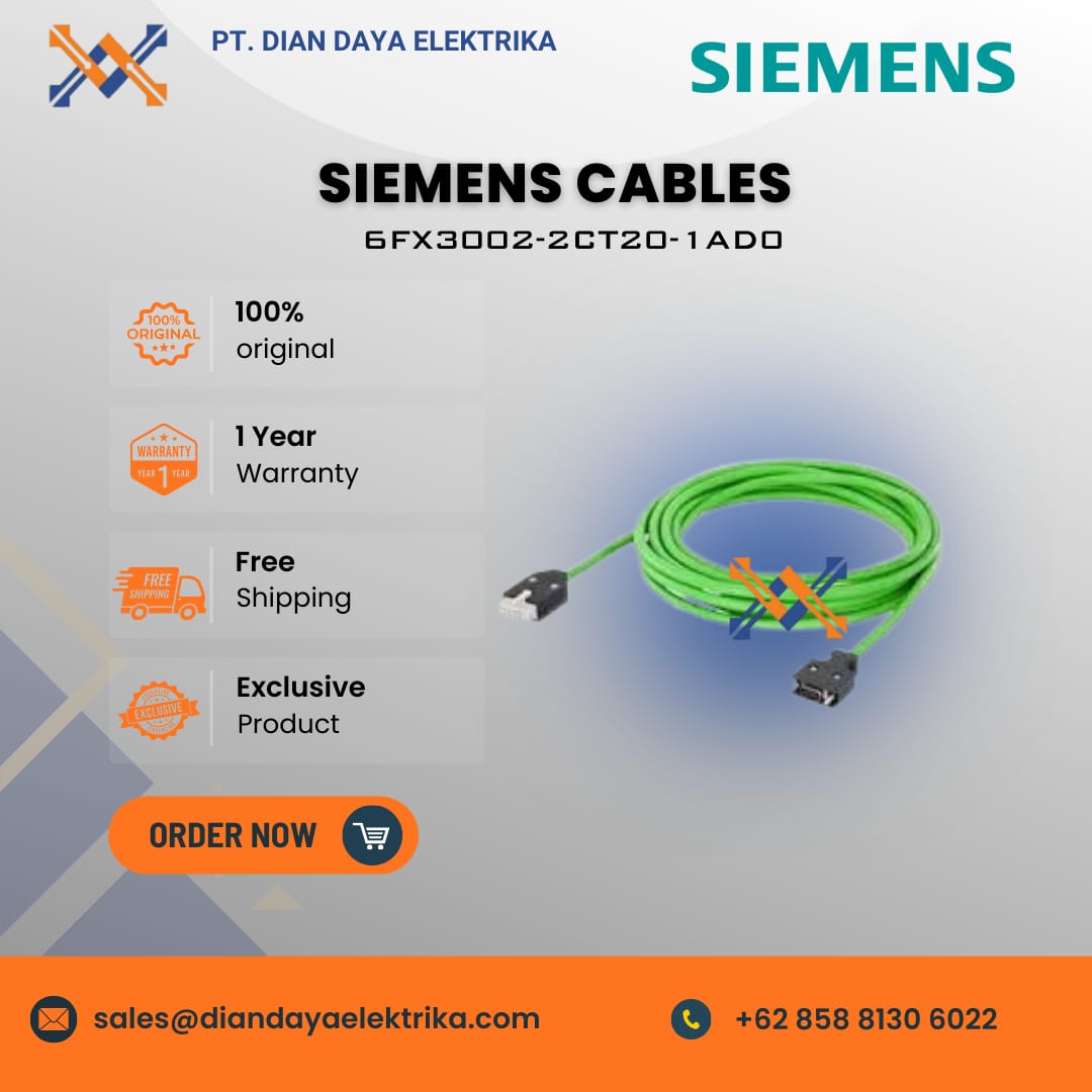 The Siemens 6FX3002-2CT20-1AD0 cable is a pre-assembled signal cable specifically designed for the Siemens SINAMICS V90 basic servo drive system. It is used to connect an incremental encoder on a compatible servo motor to the V90 servo drive.
