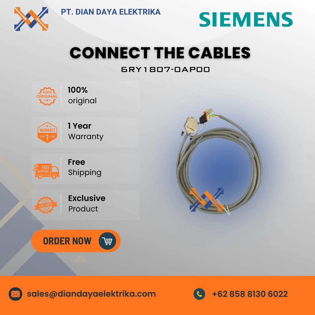 The Siemens 6RY1807-0AP00 Connect The Cables is a connecting cable specifically designed for use with components of the SINAMICS DCM (DC Converter Control Module) drive system and the AOP30 (Advanced Operator Panel) from Siemens.