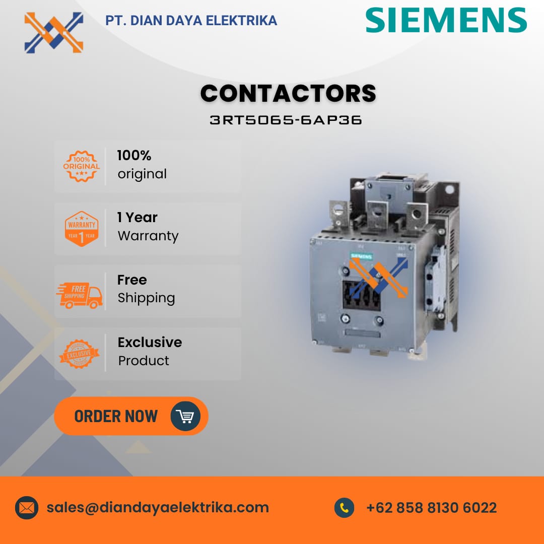 The Siemens 3RT5065-6AP36 Contactor is a 3-pole power contactor from the SIRIUS 3RT5 product series, designed for switching electrical motors.