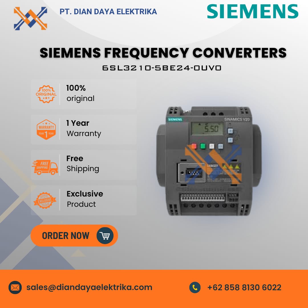 The Siemens 6SL3210-5BE24-0UV0 is a variable frequency drive (VFD) from the SINAMICS V20 series, designed for efficient and reliable motor speed control in a variety of industrial applications.