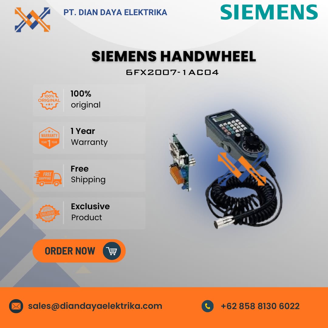 The Siemens 6FX2007-1AC04 handwheel is a portable hand-held control unit (HHU) designed for use with Siemens SINUMERIK FM-NC/840D CNC control systems.