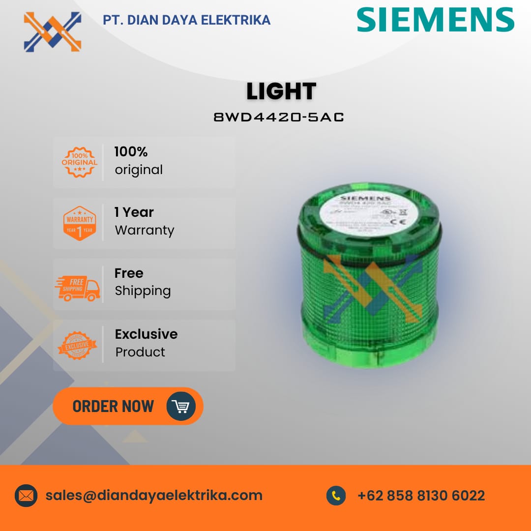 The Siemens 8WD4420-5AC is a green, continuous light element with an integrated LED, designed for the modular Siemens SIRIUS 8WD4 signal columns, typically used in industrial automation and marine applications.