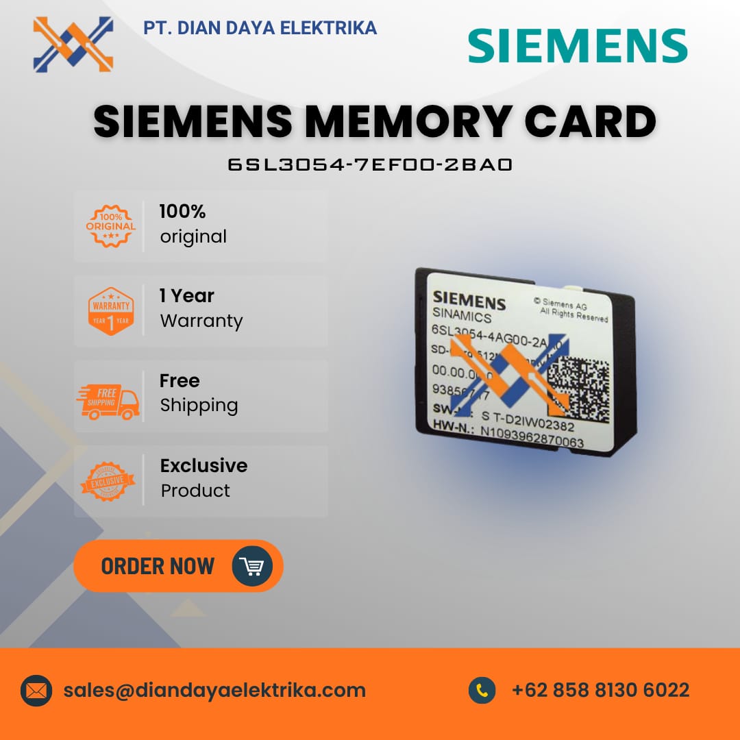 The Siemens memory card 6SL3054-7EF00-2BA0 is an industrial Secure Digital (SD) card specifically designed for use with the Siemens SINAMICS G120 drive systems.