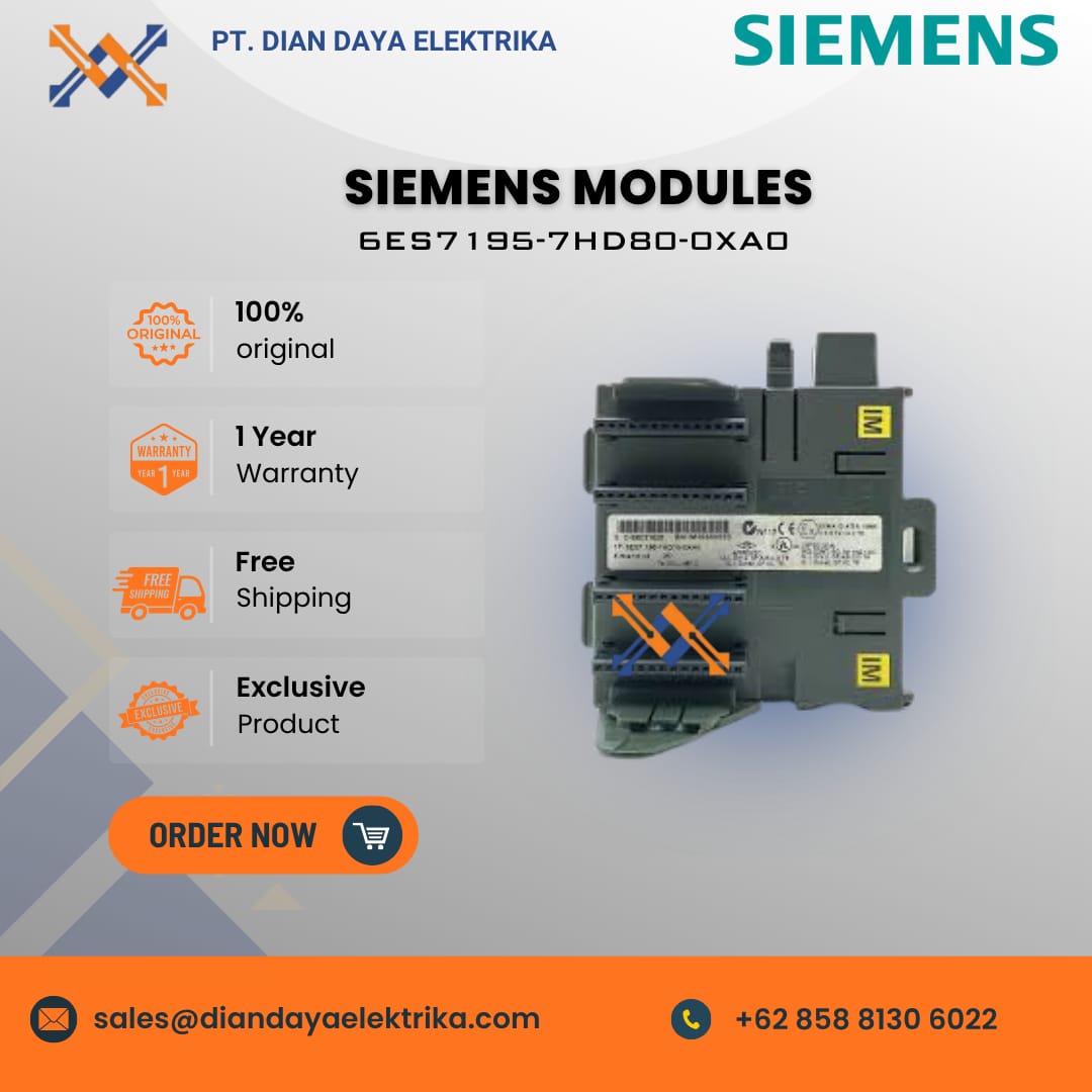 The Siemens 6ES7195-7HD80-0XA0 module is a SIMATIC DP BM IM157 bus module designed for an extended temperature range and supports the hot-swapping of I/O modules during operation.