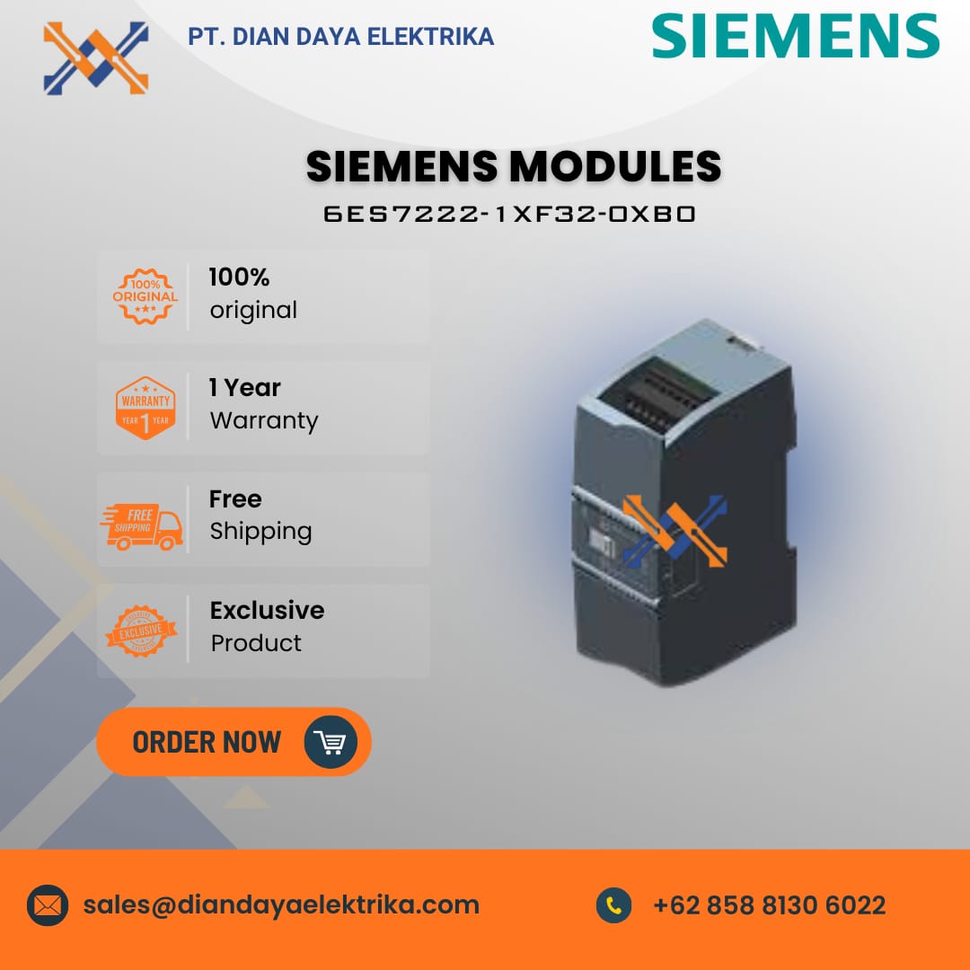 The Siemens 6ES7222-1XF32-0XB0 module is a SM 1222 digital output module for the SIMATIC S7-1200 controller system, featuring 8 relay changeover contacts.