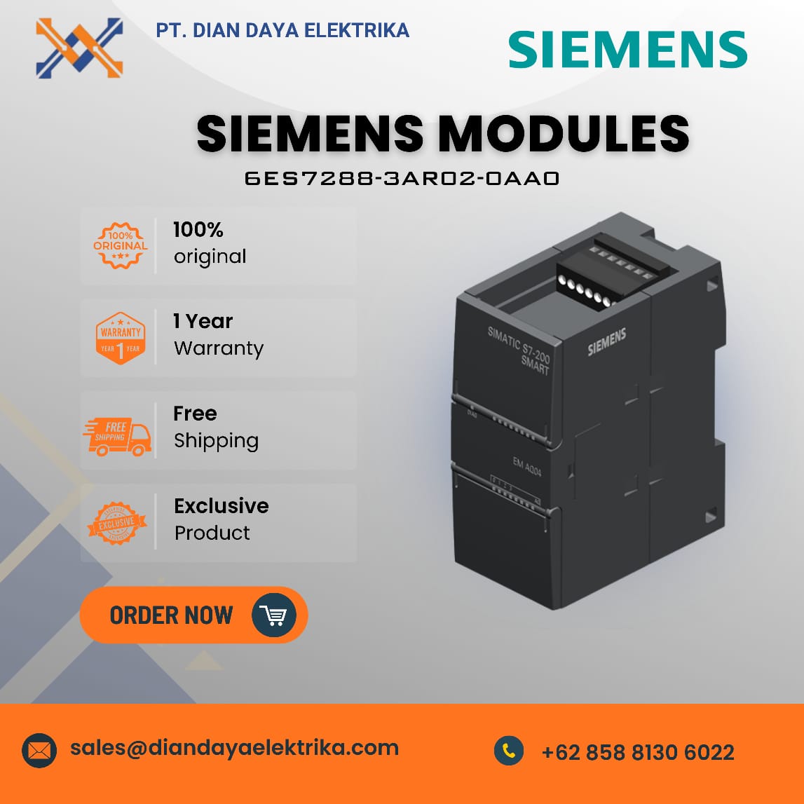 The Siemens 6ES7288-3AR02-0AA0 module is an analog input module designed for use with the Siemens SIMATIC S7-200 SMART series of PLCs (Programmable Logic Controllers). This module is used to connect Resistance Temperature Detectors (RTD) sensors to an industrial automation system for temperature measurement.