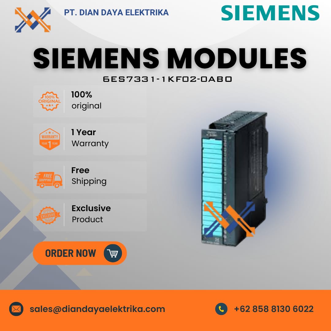 The Siemens 6ES7331-1KF02-0AB0 module is an analog input (AI) SM 331 module for the SIMATIC S7-300 PLC system. It features 8 isolated input channels with a resolution of 13 bits and is designed to measure a variety of analog signals such as voltage, current, and resistance thermometers.