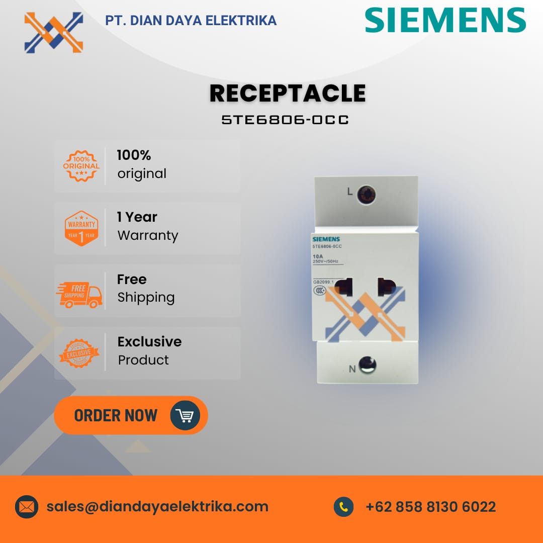 The Siemens 5TE6806-0CC is a modular socket outlet (receptacle) designed for installation within power distribution boards or consumer units. It is part of the modular power distribution unit (PDU) components offered by Siemens.