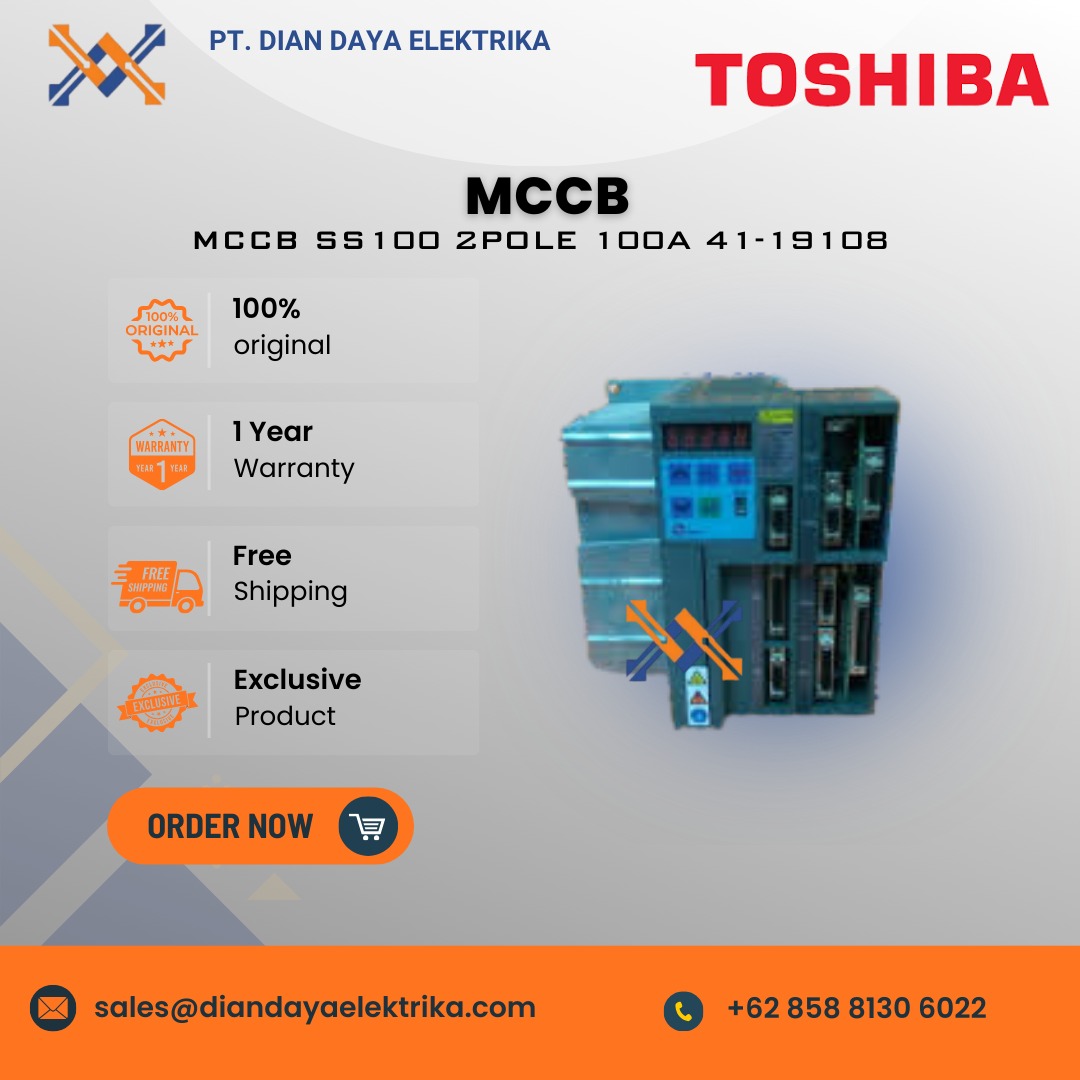 The Toshiba MCCB SS100 2 POLE 100A 41-19108 circuit breaker is a specific, no-fuse molded case circuit breaker.
