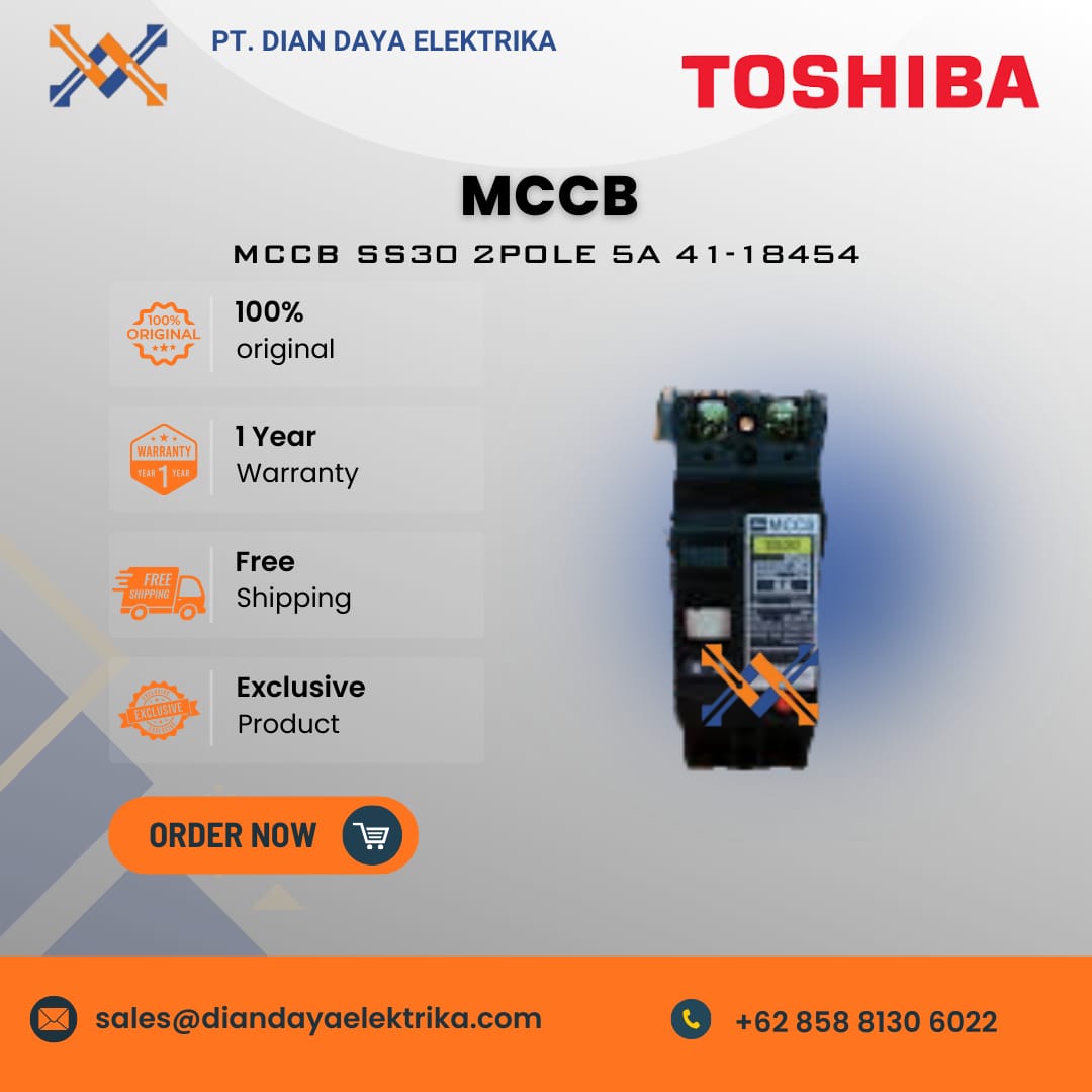 The Toshiba SS30 2POLE 5A 41-18454 MCCB is a 2-pole, 5 Ampere molded case circuit breaker (MCCB) designed for use in low-voltage electrical installations to provide protection against overloads and short circuits.
